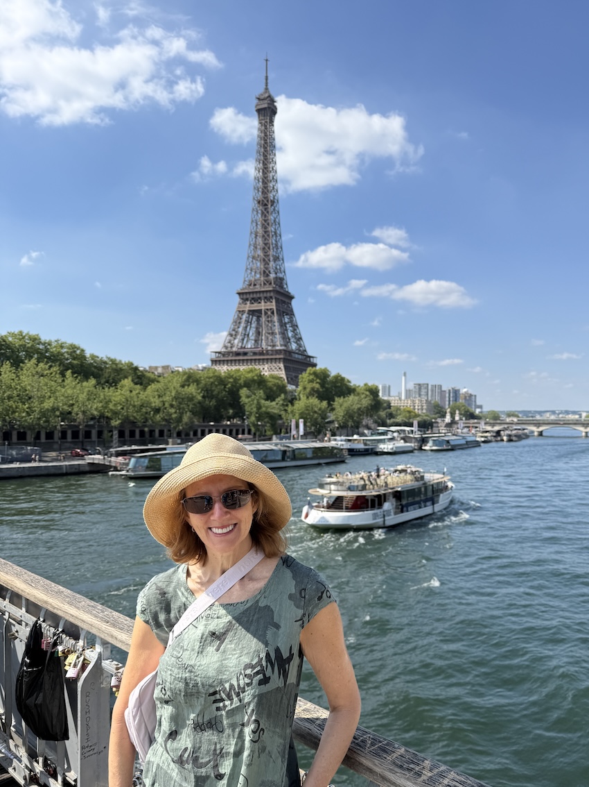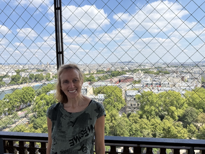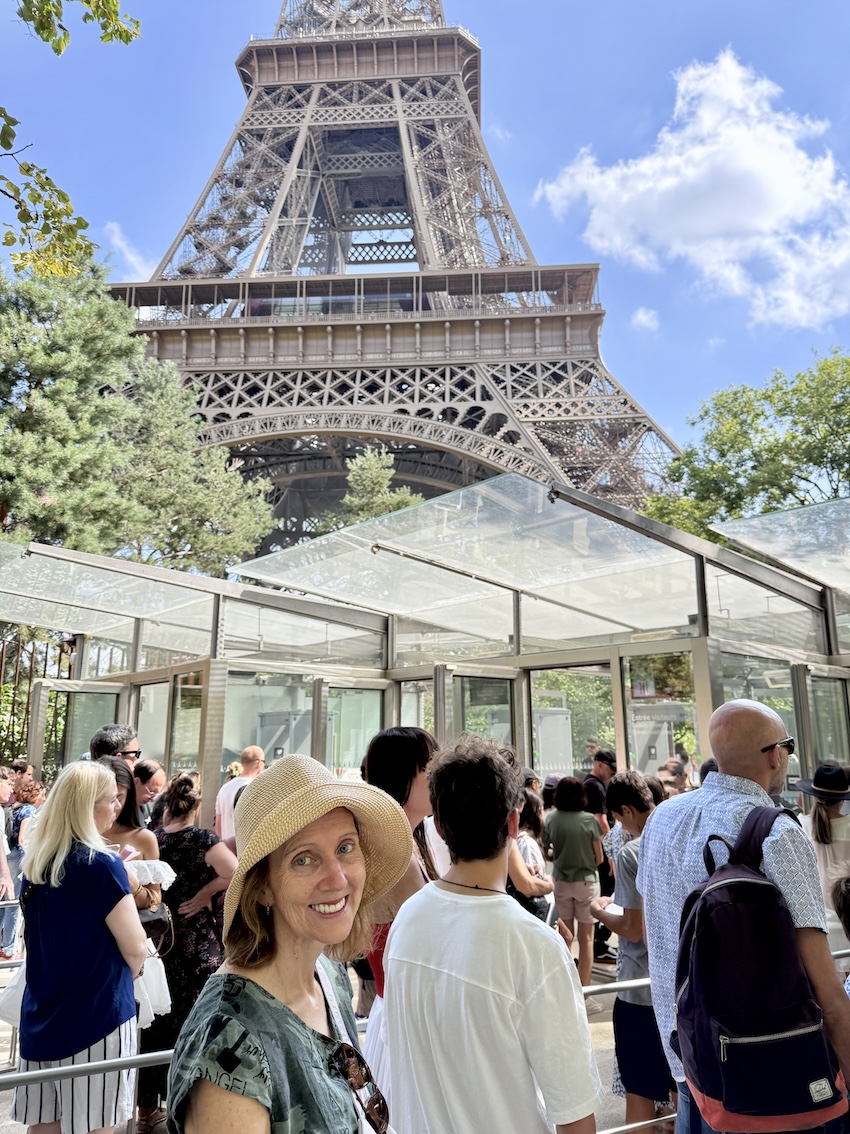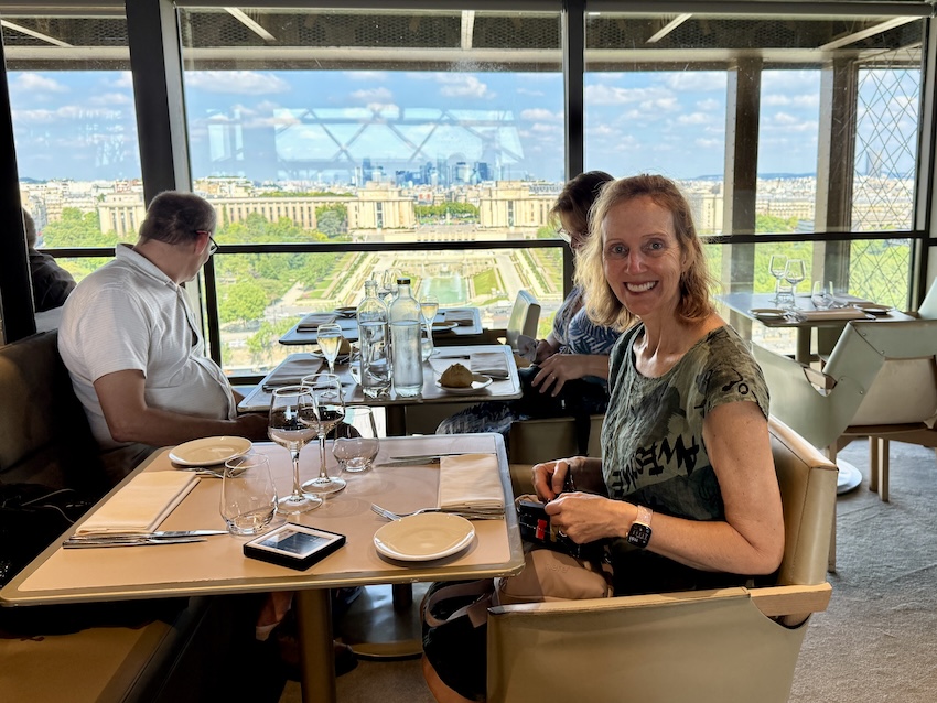 Security and tickets cleared, we made our way up the 1st level where the Brasserie is located. The size of the tower and its construction is amazing! There were lots of people around but once we were seated it was very relaxed and intimate considering the location. The lunch view was to die for as was the food! Lisa may have had "The best dessert ever". Following lunch we explored the views from the level and then descended to the ground.